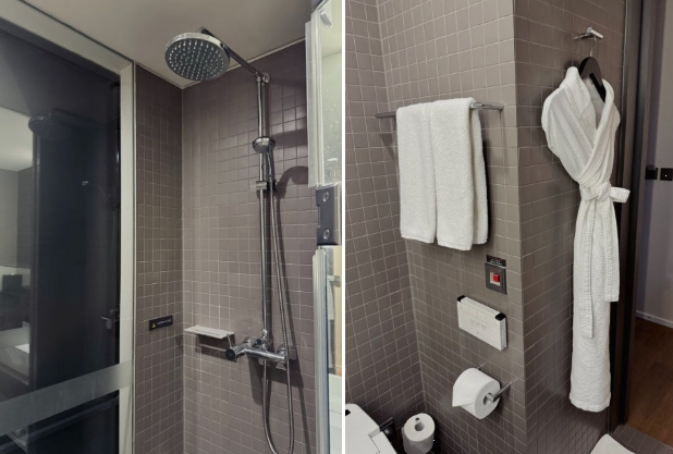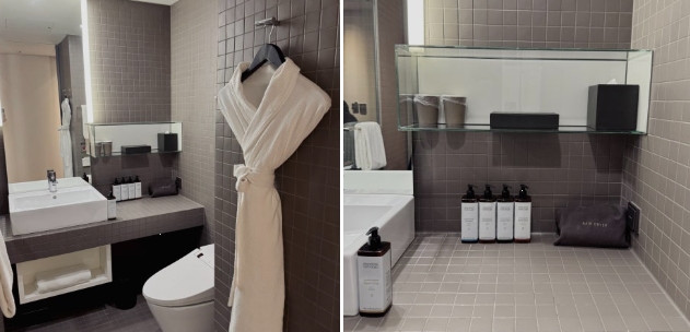 욕실은 정말 깔끔하게 관리되어 있었고, 저는 샤워부스 대신 욕조가 있는 객실을 선택했어요. 욕조는 깊고 넉넉해서 오랜만에 푹 담그는 목욕을 즐길 수 있었습니다.