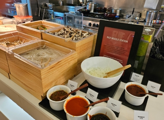 한식 코너에는 따뜻한 밥과 미역국, 그리고 불고기, 나물류, 김치, 계란찜 등 깔끔한 반찬들이 준비되어 있었는데, 너무 자극적이지 않고 담백한 맛이라 속도 편안했습니다. 개인적으로는 계란찜이 폭신하고 부드러워서 두 번이나 리필했을 정도였어요.