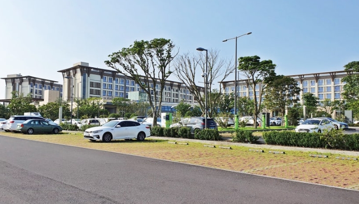 제주공항에서 렌터카로 이동해 호텔에 도착했는데, 메리어트관 앞 주차장이 넓어 주차 스트레스가 전혀 없었어요. 지상 주차장은 물론, 체크인 후 카드키를 받아 지하 주차장도 자유롭게 이용할 수 있었습니다.