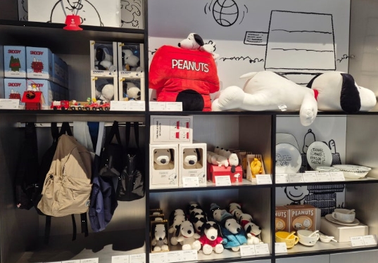 매장 한켠에는 기념품 코너도 마련되어 있었는데, 컵, 접시, 인형, 에코백 같은 스누피 굿즈들이 너무 귀여워서 하나쯤은 꼭 집어가고 싶은 마음이 들었어요.
