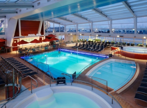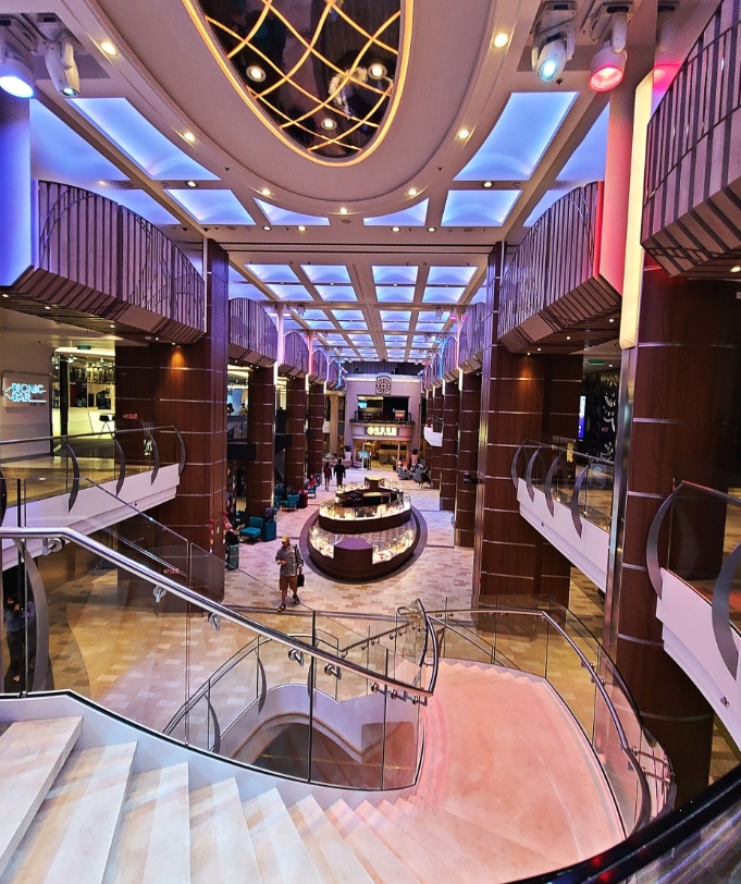 선내 중앙에는 대형 수영장과 자쿠지가 설치되어 있어 날씨 좋은 날엔 물놀이를 즐길 수 있었고, 밤에는 뮤지컬 공연과 마술쇼가 펼쳐지는 대극장에서 하루를 마무리하곤 했어요.