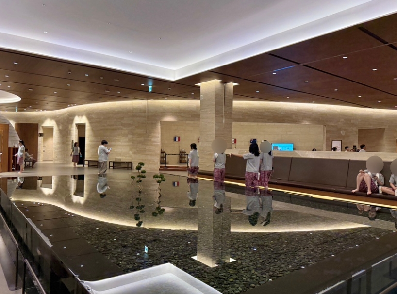 찜질방의 야외 테라스에는 풋 스파가 마련되어 있었습니다.