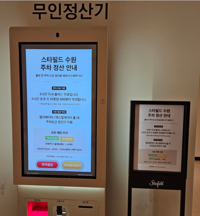 주차 확인은 매장 카운터에서 도장 또는 바코드를 통해 진행하거나, 일부 매장은 자동으로 차량 번호 인식을 통해 할인 시간이 적용되기도 합니다.