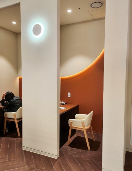 공부나 업무를 해야 할 때는 조용한 스터디 라운지를 추천드려요. 유료 공간이긴 하지만, 프라이빗하게 마련된 1인 좌석과 그룹 좌석이 마련되어 있어 매우 쾌적합니다.
