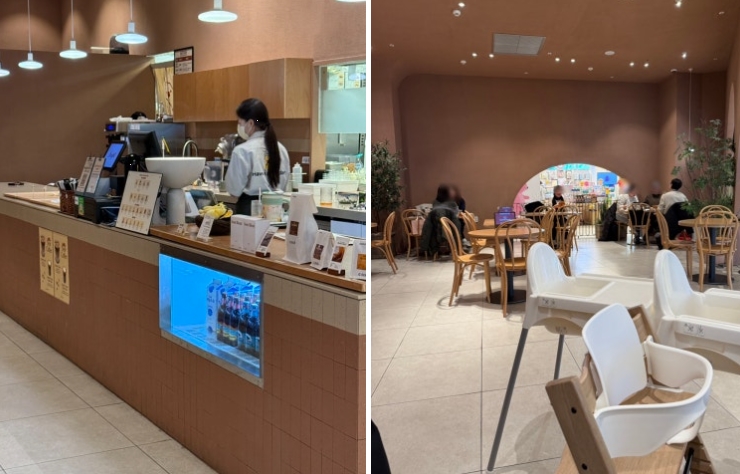 입구로 들어서면 가장 먼저 만나는 카페 공간은 굉장히 깔끔하고 정돈된 느낌을 줍니다.
