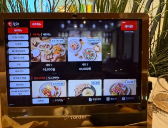 로로아녹은 브런치 카페답게 식사 메뉴가 정말 다양했어요. 샐러드, 파스타, 스프 등 다양한 옵션이 있었고, 태블릿으로 간편하게 메뉴를 주문할 수 있어서 편리했습니다.