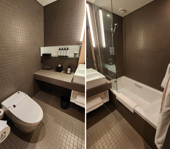 기본적인 어메니티로는 바디로션, 바디샴푸, 샴푸, 컨디셔너, 일회용 칫솔과 치약 등이 제공되어 별도의 준비 없이도 편리하게 이용할 수 있었습니다.