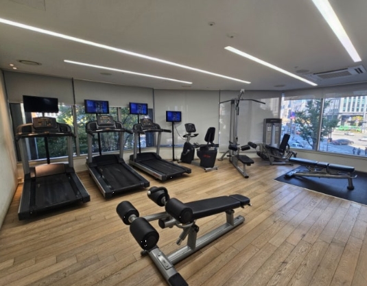피트니스 센터는 오전 6시부터 밤 11시까지 운영되며, 객실 키를 이용해 출입할 수 있습니다. 기구는 많지 않지만, 트레드밀, 사이클, 레그 익스텐션 등 기본적인 운동을 할 수 있는 장비들이 마련되어 있어 간단한 운동을 하기에 적합했습니다.