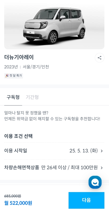 차량별 가격은 앱에서 확인 가능하니, 원하는 차종만 고르면 대략적인 예산을 쉽게 알 수 있어요.