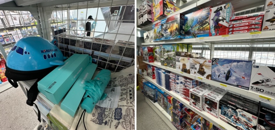 아이 선물용으로도 좋고, 항공 덕후 분들이라면 구경하는 재미가 쏠쏠할 것 같아요. 가격대도 다양해서 부담 없이 기념품 하나쯤 구매하기 좋았어요.