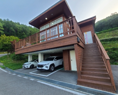 각 숙소 앞에 개별 주차 공간이 마련되어 있어 짐 옮기기도 편했어요. 입구에서부터 시설까지 도로 정비도 잘 되어 있고, 산길이라고 해도 불편함은 전혀 없었답니다.