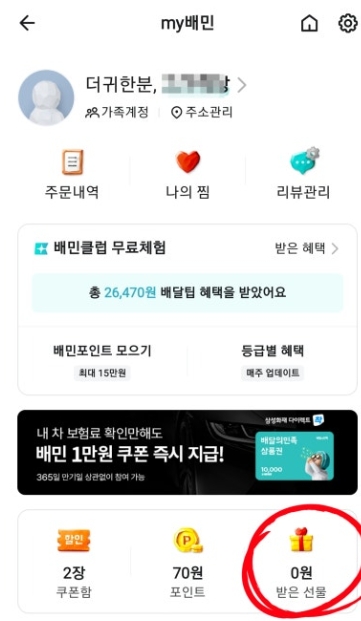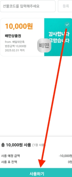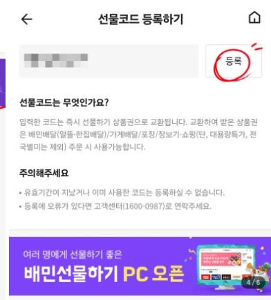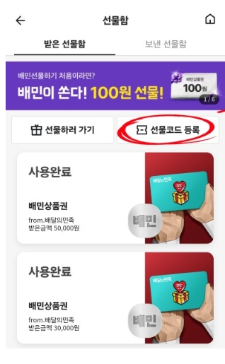 선물 받은 상품권은 배민 앱에 등록해야 사용할 수 있어요. 등록 방법도 정말 간단했답니다.