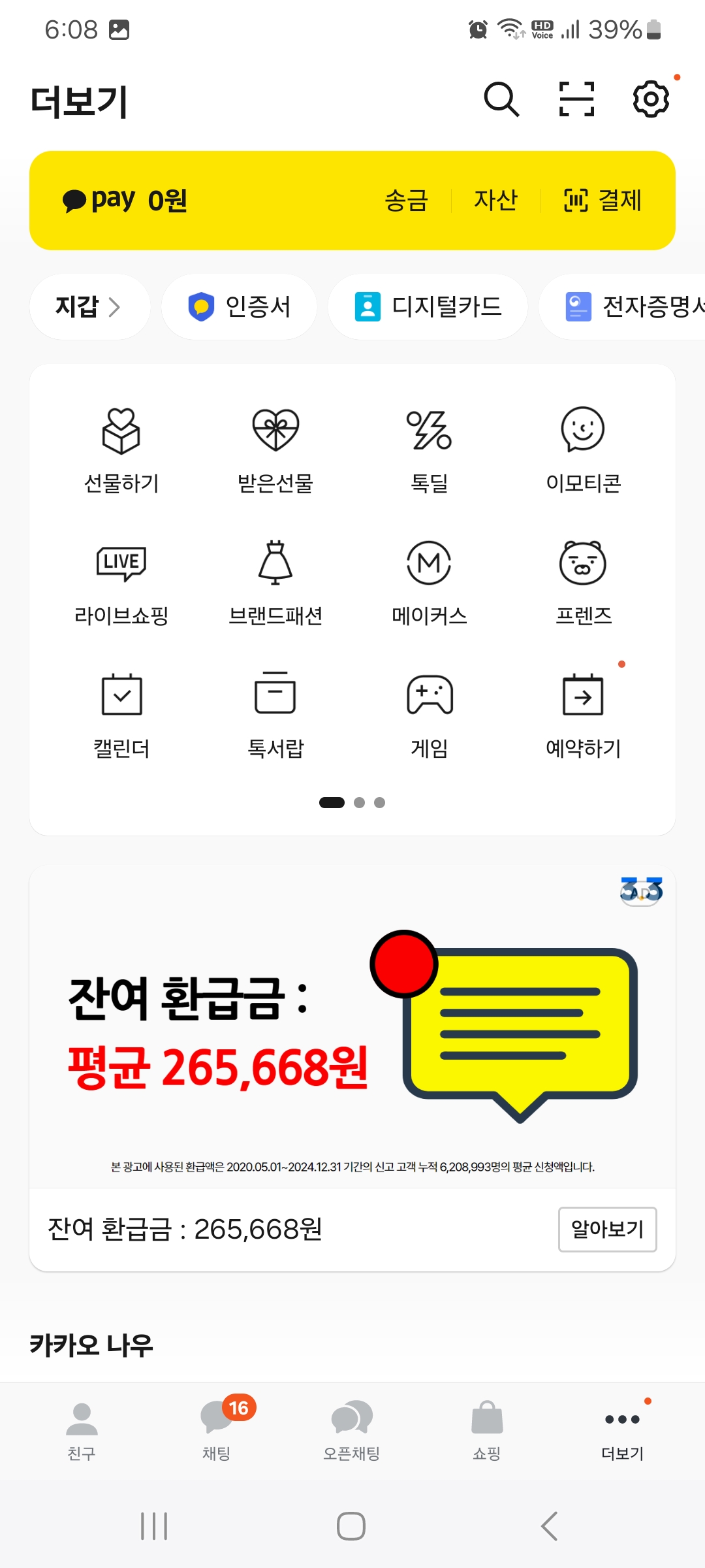 카카오톡 → 더보기 탭 → 선물하기 클릭