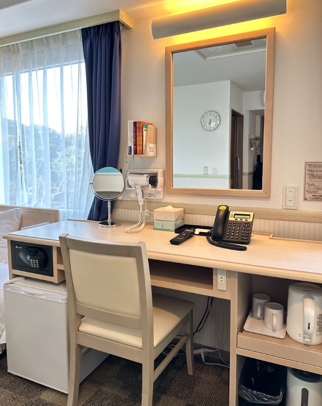 장애친화형 룸이라 테이블이 없었던 점은 살짝 아쉬웠지만, 그 외에는 모두 만족스러웠습니다. 뷰, 가격, 편의시설, 위치 모두 훌륭한 호텔로, 대마도 여행을 계획 중이라면 토요코인 쓰시마 히타카츠는 강력 추천드리는 숙소입니다.