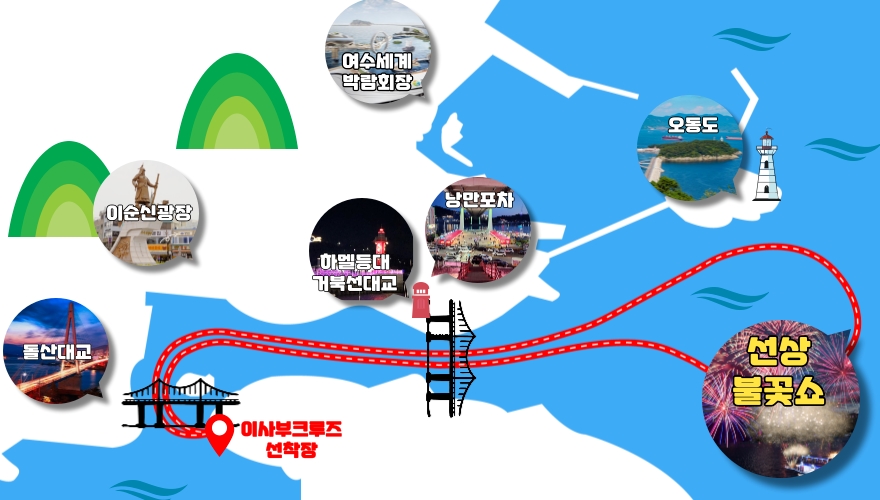 이사부크루즈는 여수의 핵심 포인트들을 지나갑니다.