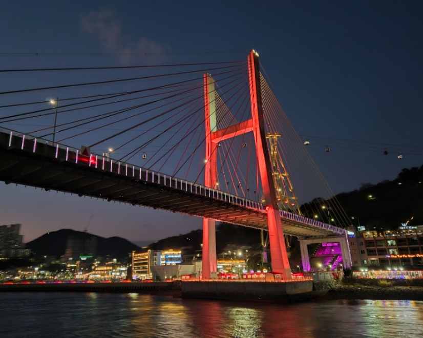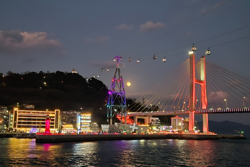 하지만 불빛으로 가득한 해안선을 따라, 불 밝혀진 거북선대교와 케이블카가 만드는 야경은 여전히 황홀한 낭만의 절정을 선사했습니다.