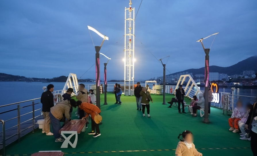 유람선은 돌산대교 밑에서 출항해 장군도 – 거북선대교 – 오동도 앞바다까지 항해하고 다시 되돌아오는 약 70분 코스로 진행돼요.