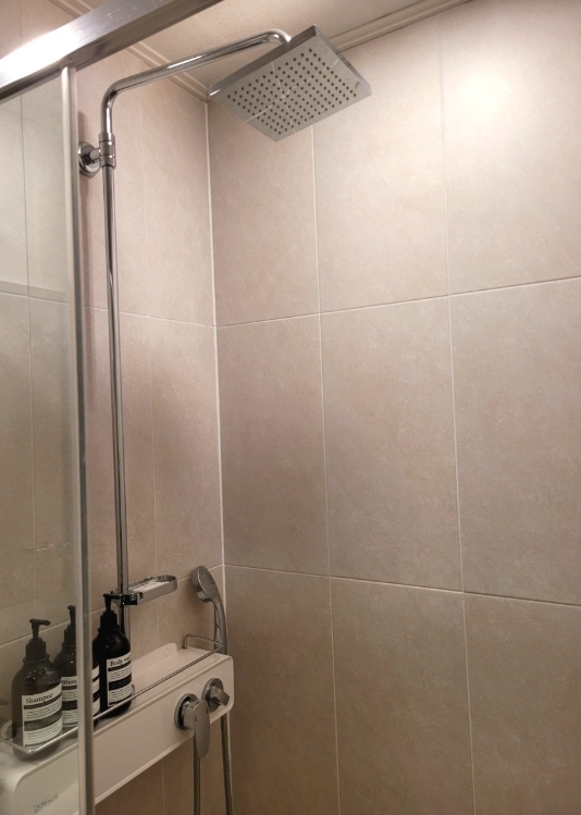 화장실은 1개였지만 4명이 사용하기에 전혀 부족함이 없었습니다. 샤워 공간과 세면 공간이 분리되어 있어 물이 튀는 일도 없었고, 바닥 미끄럼 방지나 문 여닫이 등의 편의성도 잘 갖추어져 있었습니다.