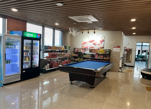 본관 로비는 체크인/체크아웃을 담당하는 메인 건물인데, 이곳에 작은 편의점과 포켓볼 시설도 마련되어 있어 투숙객들이 자유롭게 이용할 수 있었습니다.