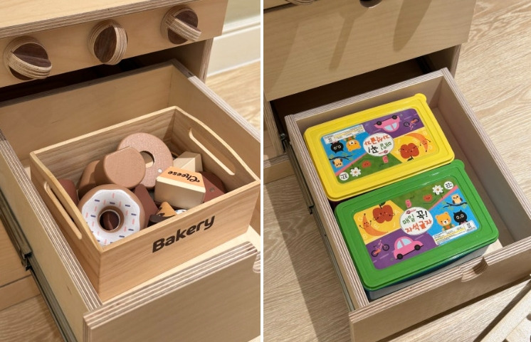 특히 주방놀이 세트는 아이들의 상상력을 자극할 수 있는 소품이 다양하게 마련되어 있어서 아이가 정말 열심히 놀더라고요. 흔들 목마는 포토존 역할까지 톡톡히 했고요. 자석보드는 글자 자석만 있어 조금 아쉬웠지만, 아이가 충분히 재미있게 놀 수 있는 수준이었습니다.