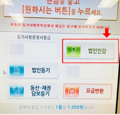 준비물: 법인 인감카드 + 수수료 1,000원(카드·현금 결제)