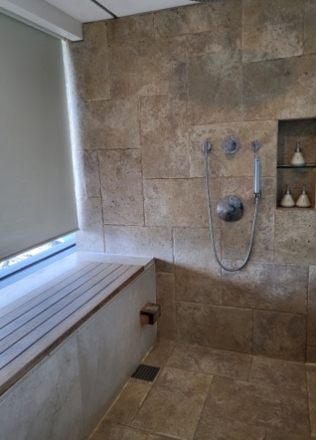 욕실은 대리석 마감에 욕조와 샤워부스가 따로 분리되어 있었고, 어매니티는 허브향이 감도는 천연 제품이 제공돼 사용하면서 기분까지 좋아졌어요.