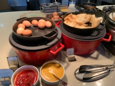 조식은 성인 66,000원, 어린이 33,000원이며 투숙객은 할인을 받을 수 있어요. 체크아웃 시 룸 차지로 합산 결제가 가능해서 따로 결제하지 않아도 되어 편리했어요. 조식 메뉴는 이스턴, 웨스턴, 웰빙 중 하나를 선택할 수 있는데 저는 웨스턴을 골랐어요.