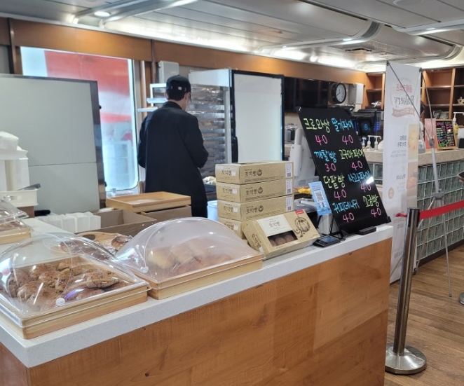 출항 시간이 밤이다 보니 대부분의 승객들이 선실에서 조용히 쉬었고, 분위기 자체가 잔잔했어요. 저도 도착 전에 식당에서 간단히 아침을 먹었는데 가격도 무난하고 맛도 괜찮았어요.