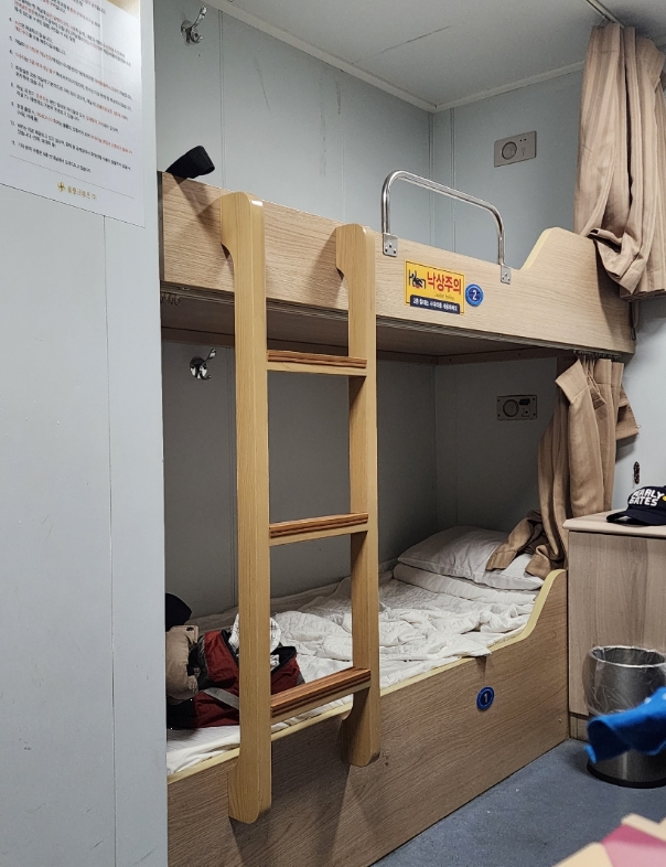 제가 선택한 객실은 6인실 인사이드로, 편도 기준 약 163,000원이었어요. 창문이 없는 대신 가격이 저렴하고 비교적 조용하다는 후기를 보고 선택했죠. 친구는 4인실 씨사이드를 이용했는데, 창이 있어 아침 풍경을 보는 재미가 있다고 하더라고요. 씨사이드 객실은 4인실 기준 약 239,000원이었어요. 로얄스위트까지 다양한 옵션이 있으니 예산과 여행 스타일에 맞춰 선택하면 돼요.