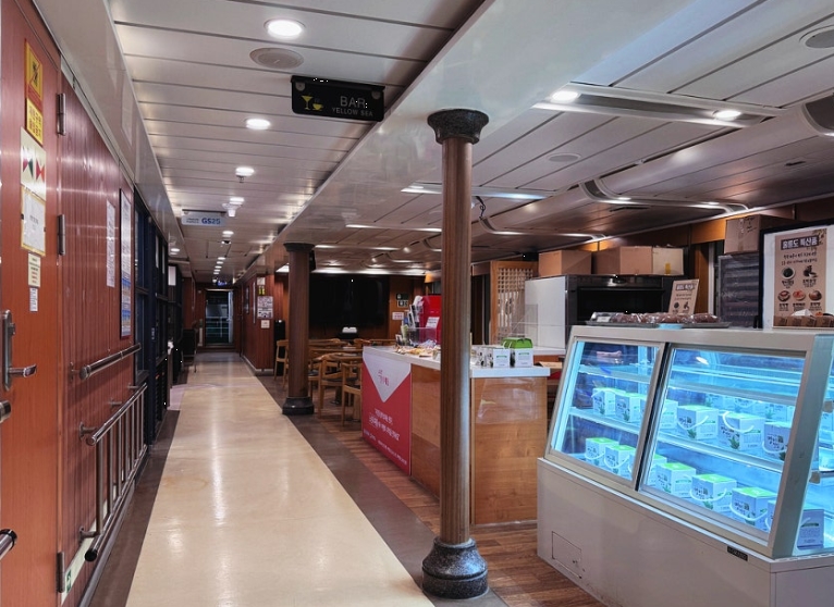 크루즈 내부는 생각보다 훨씬 깔끔하고 쾌적했어요. 각 객실 외에도 공용 공간이 잘 마련되어 있어서 이동 중에도 지루하지 않았어요. 식당, 편의점, 게임룸, 노래방 같은 시설이 있어서 시간을 보내기에도 좋았고요.