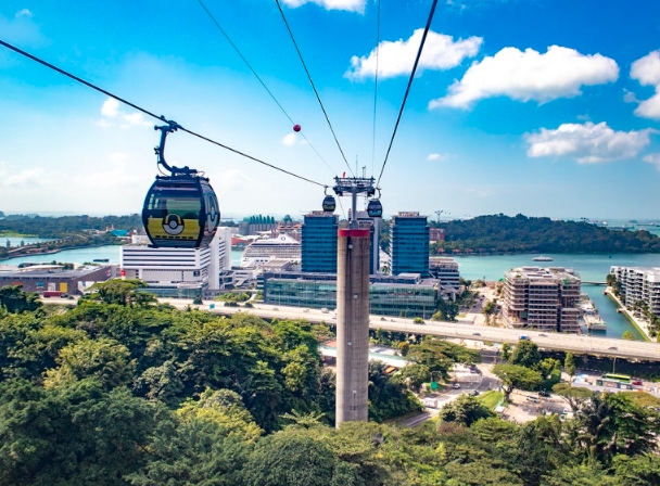 둘째 날에는 아침부터 센토사섬으로 향했어요. 케이블카를 타고 이동하는 동안 창밖으로 펼쳐지는 바다 풍경이 인상 깊었고, 여행 기분을 한층 끌어올려주었죠.