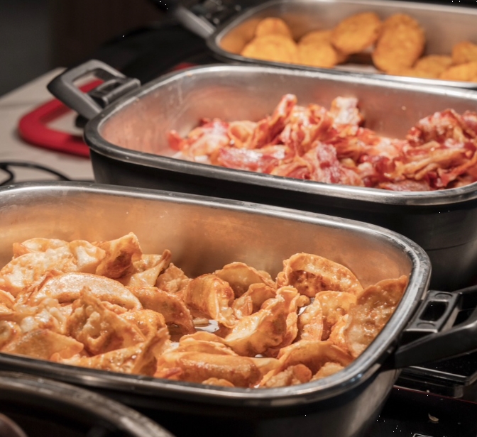 핫푸드 코너는 만두, 튀김류, 베이컨, 커리와 난 등 아시아식과 아메리칸 스타일이 다양하게 섞여 있었답니다. 계란 조리는 따로 주문할 수 있는 에그 스테이션에서 가능했고, 평일에는 셰프 한 분, 주말에는 두 분이 계셔서 주문 후 바로 만들어주셨어요.