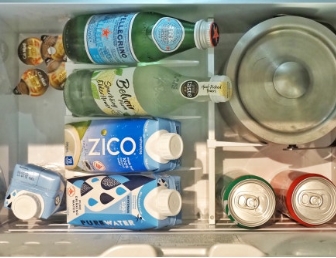 미니바 또한 1회 무료라 콜라, 스프라이트, 탄산수 등 다양한 음료를 무료로 즐길 수 있어 좋았어요. 테라스 밖으로는 수영장과 주변 리조트 뷰가 펼쳐져 있었고, 날씨 좋은 날엔 푸른 하늘과 함께 사진 찍기 좋았답니다.
