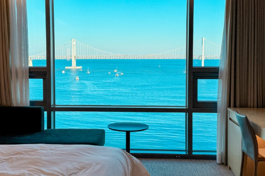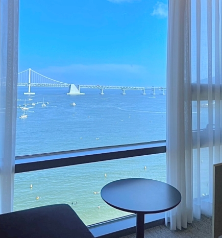 가장 인상 깊었던 건 바로 창 너머 광안대교 야경이었어요. 밤이 되면 다리 전체가 조명으로 밝혀지는데, 그 장관을 누운 채 볼 수 있다는 점이 최고였어요.