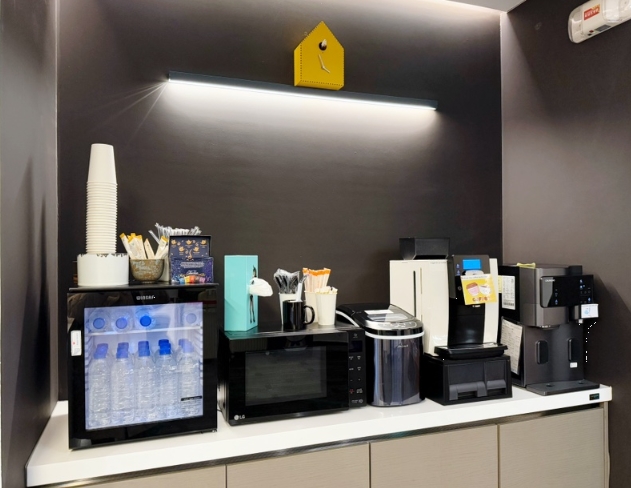 수영장이나 사우나는 없지만, 24시간 운영되는 비즈니스센터가 있어 노트북 작업이나 프린터 사용도 가능했어요. 조식은 따로 제공되지 않지만, 1층과 인근에 브런치 카페, 카레 전문점, 커피숍 등 다양하게 있어 아침 걱정은 없답니다.