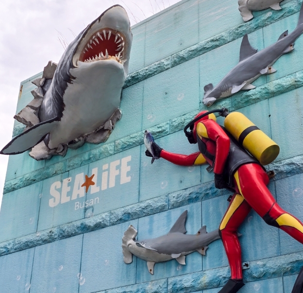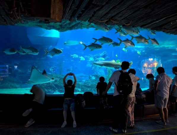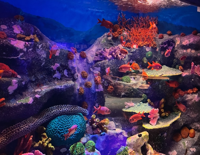 250여 종의 다양한 해양생물과 화려한 조명이 어우러진 수족관은 마치 바닷속을 걷는 듯한 기분을 선사합니다. 특히 유리 터널로 되어 있는 메인 수조는 ‘인생샷’ 명소로 유명하죠.