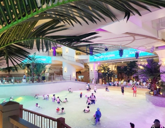 수영복 착용 후 입장하는 이 워터파크는 커플끼리 물놀이와 스파를 동시에 즐기며 스트레스를 날릴 수 있는 공간이에요. 비 오는 날, 더운 여름에도 탁월한 선택이 될 수 있죠.