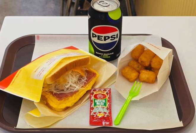 이 메뉴의 가장 큰 장점은 과하지 않고 조화로운 맛이에요. 특별히 자극적인 맛은 없지만, 한입 한입 먹을 때마다 정돈된 맛이 입 안을 채웁니다. 햄과 계란이 주는 익숙한 풍미에, 콘샐러드가 식감을 더해주고, 특제 소스가 달달함을 살짝 얹어줘요.