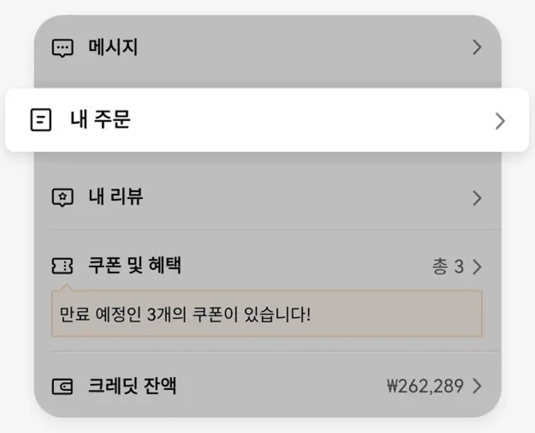 II. 내 주문'에서 해당 주문을 찾아 '반품/환불' 버튼을 클릭합니다.