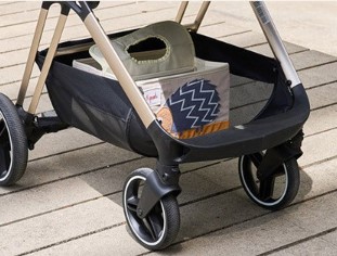 유모차 아래쪽에 넉넉한 수납 공간이 있어 외출 시 필요한 물품을 손쉽게 보관할 수 있습니다. 기저귀 가방, 장난감, 간식 등을 넣어도 충분한 공간이 마련되어 있어 매우 실용적입니다.