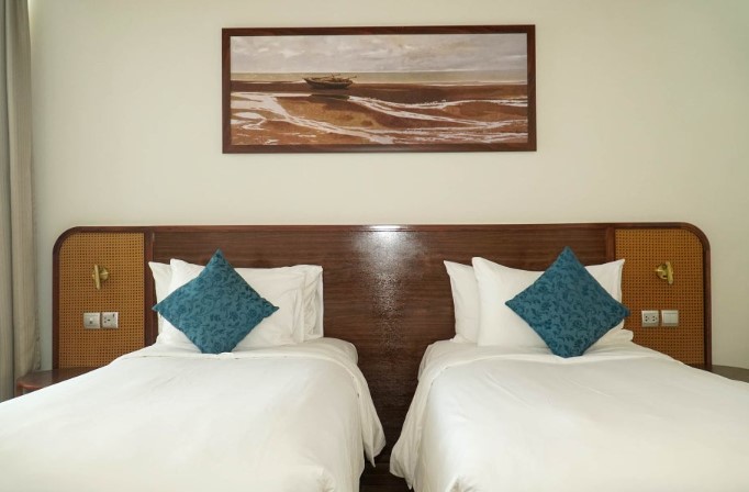 침대는 양옆으로 넓어서 트윈베드가 아니더라도 친구와 부딪힐 일이 없어 편안하게 잘 수 있었습니다. 숙면을 위한 모든 조건이 갖춰져 있어, 푸꾸옥에서의 하루 일정을 마치고 돌아와 꿀잠을 잘 수 있었습니다.