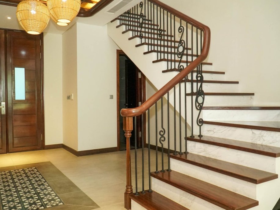 2층으로 올라가는 계단에는 손잡이가 있어 안전하게 이동할 수 있었습니다. 대리석 위에 우드를 덧댄 계단은 시각적으로도 안전하게 보였고, 덕분에 헛디딜 걱정 없이 편안하게 오르내릴 수 있었습니다.