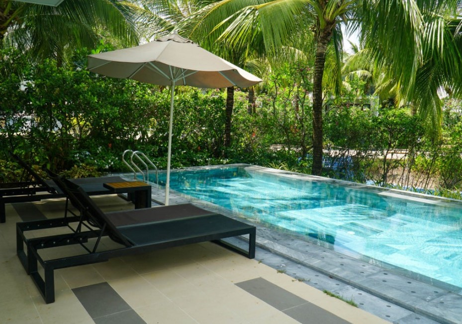 로비의 근사함 못지않게 예약했던 럭셔리 푸꾸옥 풀빌라 3베드룸도 호화로웠습니다. 개별 풀장의 규모도 상당히 크고, 선베드도 넉넉하게 구비되어 있어 편하게 사용할 수 있었습니다. 수심이 높은 곳과 낮은 곳이 준비되어 있어 남녀노소 누구나 즐겁게 수영을 즐길 수 있었죠.