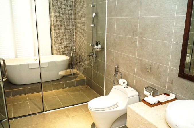 욕실 역시 매우 청결하고 넓은 욕조가 있어 반신욕을 즐기기 좋았습니다. 뜨거운 물도 잘 나와 피로를 풀기에 안성맞춤이었습니다. 욕실은 항상 깨끗하게 유지되어 있었고, 샤워부스와 세면대가 분리되어 있어 깔끔하게 사용할 수 있었습니다.