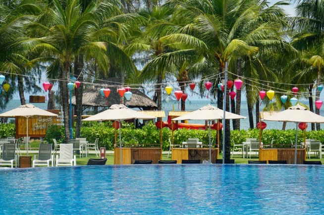 푸꾸옥 베스트웨스턴 리조트의 수영장 주변에는 전통적인 베트남 등불이 주렁주렁 달려있어 분위기를 한층 더 아름답게 만들어주었습니다. 전통을 현대적으로 잘 녹여낸 인테리어가 인상적이었고, 우리가 배울 점이 많다고 느꼈습니다.
