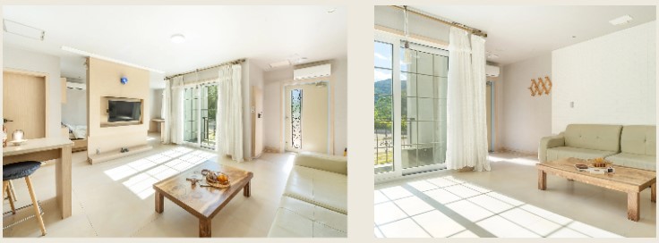 객실마다 개별 테라스가 마련되어 있으며, 바비큐 공간과 제트스파 시설을 이용할 수 있습니다. 특히 온수는 무료로 제공되어 가성비가 뛰어납니다.