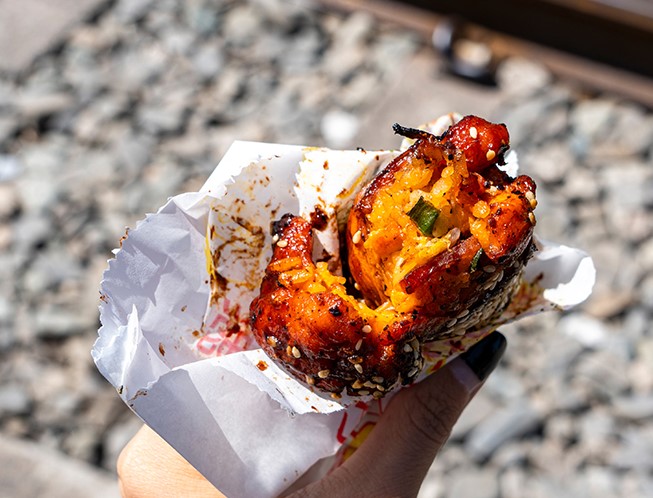 진과스에서 점심으로는 광부 도시락을 맛볼 수 있습니다. 팬데믹 이전보다 더 맛있어진 느낌이었고, 식당의 테라스에서 멋진 뷰를 감상하며 식사를 했습니다. 식사 후에는 황금박물관을 방문하거나 철길을 따라 산책할 수 있습니다.