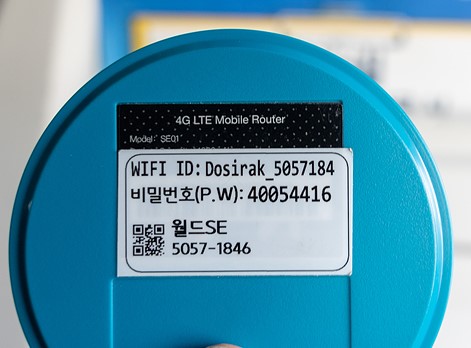 포켓 와이파이 뒤에 아이디와 비밀번호가 적혀 있으니, 와이파이를 켜고 해당 정보를 입력하면 연결이 완료됩니다.