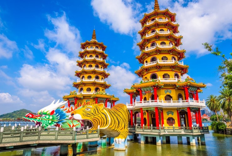 용호탑은 가오슝에서 가장 유명한 랜드마크 중 하나로, 연지담에 위치해 있습니다. 이 탑은 특별한 구조를 가지고 있는데, 방문객들은 용의 입으로 들어가 호랑이의 입으로 나오는 형태로 설계되어 있습니다. 이러한 구조는 전통적인 중국 문화에서 행운과 번영을 상징합니다.